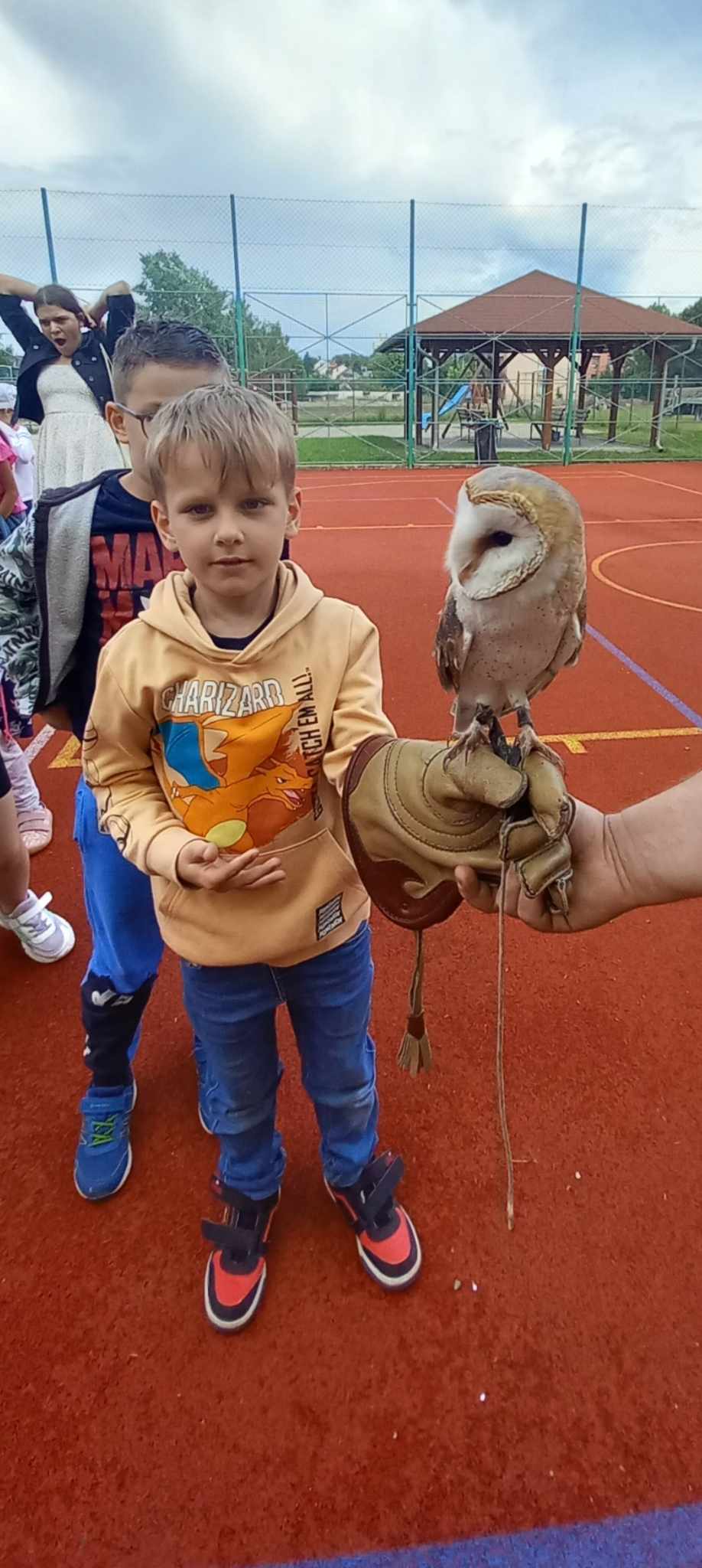 Zpestřením byla sokolnická ukázka. Počasí nám přálo, a tak naučný program probíhal na našem školním hřišti. Pan Přibyl nám dovezl na ukázku dravé ptáky. Děti se dozvěděly spoustu zajímavých informací, mohly se zúčastnit výcviku a na závěr měly možnost se vyfotit se sovou pálenou. Celá přednáška byla hrazena z evropského fondu OP JAK.