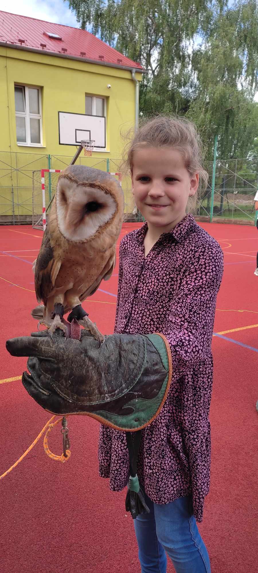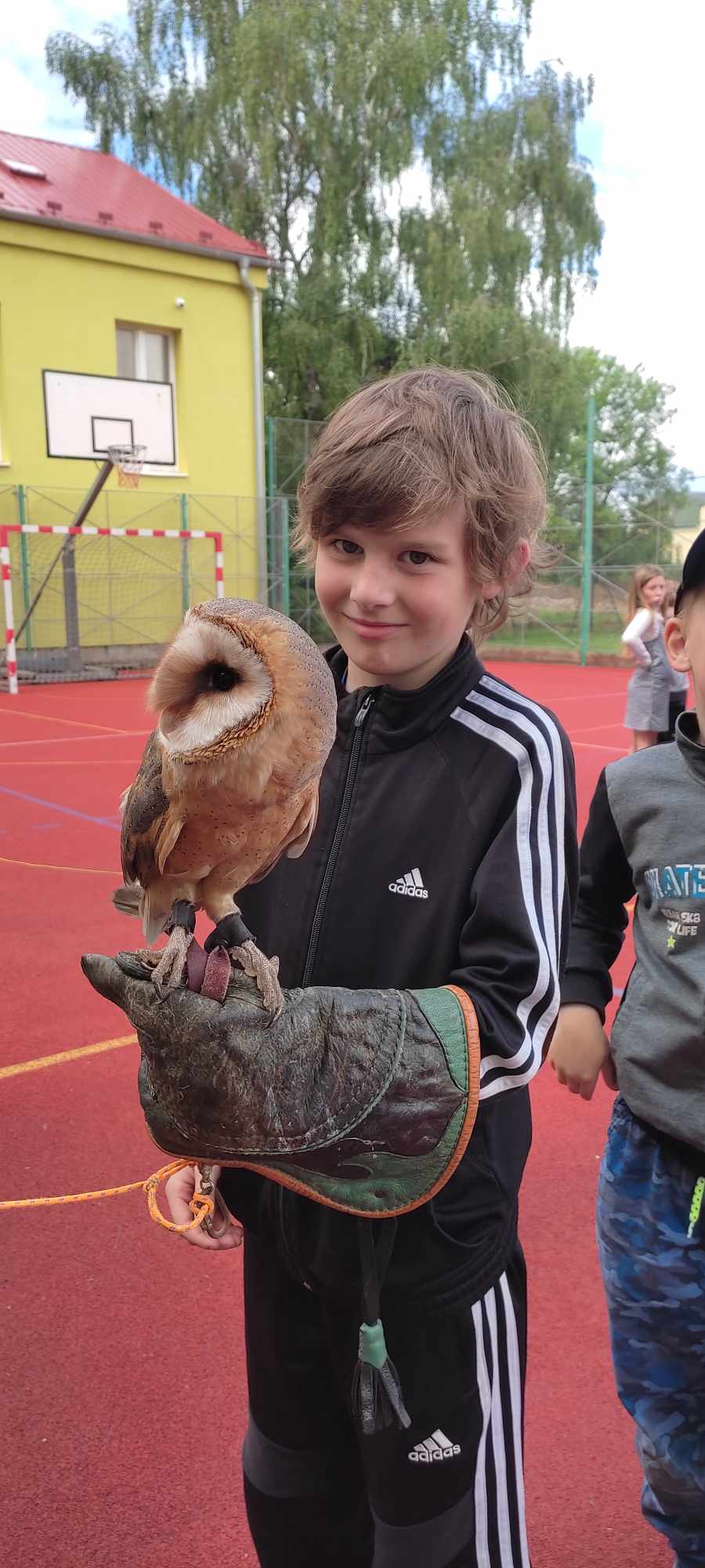 Zpestřením byla sokolnická ukázka. Počasí nám přálo, a tak naučný program probíhal na našem školním hřišti. Pan Přibyl nám dovezl na ukázku dravé ptáky. Děti se dozvěděly spoustu zajímavých informací, mohly se zúčastnit výcviku a na závěr měly možnost se vyfotit se sovou pálenou. Celá přednáška byla hrazena z evropského fondu OP JAK.