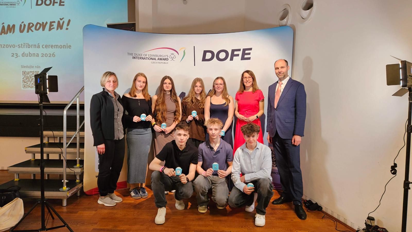 Ve čtvrtek 23.dubna 2026 byli žáci naší školy oceněni na bronzovo-stříbrné ceremonii DofE v Ostravě. Co DofE znamená? Jedná se o Mezinárodní cenu vévody z Edinburghu. Jde o jeden z celosvětově nejvýznamnějších programů neformálního vzdělávání, který založil před více než 60 lety Princ Philip, vévoda z Edinburghu, manžel britské královny Alžběty.