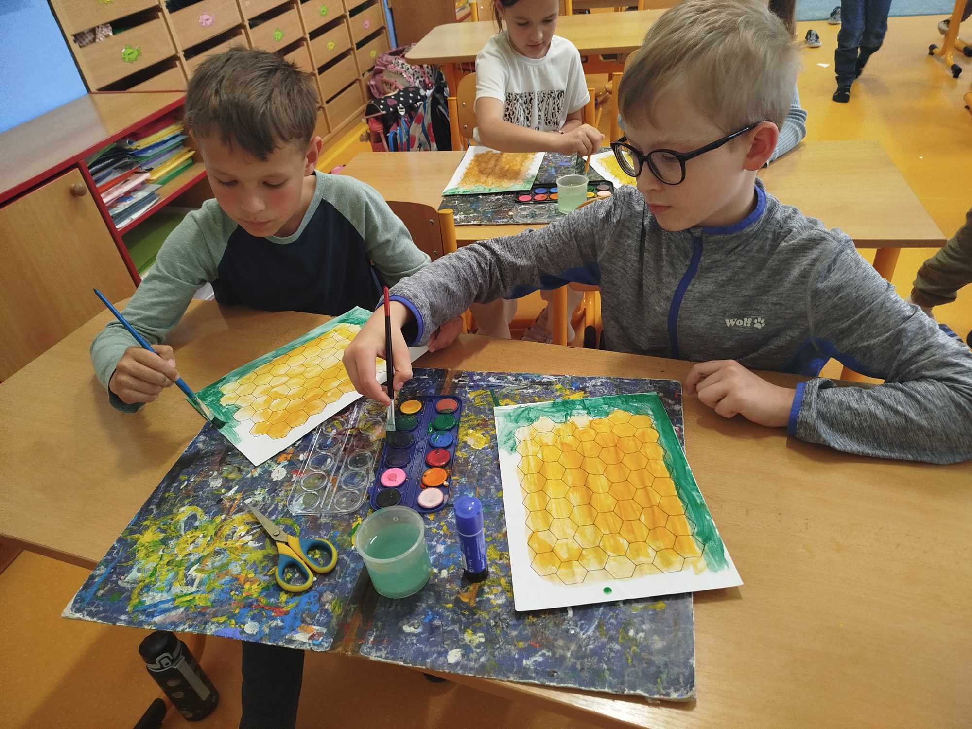 20. května byl „Světový den včel“. S dětmi jsme si pouštěli dokumentární pořady o včelách a prohlíželi jsme si encyklopedie. Měli jsme možnost si z 5. B vypůjčit včelí úl a detailně si ho prohlédnout. Z naší družinové sbírky jsme dětem ukázali včelu (dělnici a trubce), čmeláka, vosu a sršeň. Děti se dozvěděli mnoho zajímavých informací o hierarchii včel, tvorbě medu a užitečnosti včel.