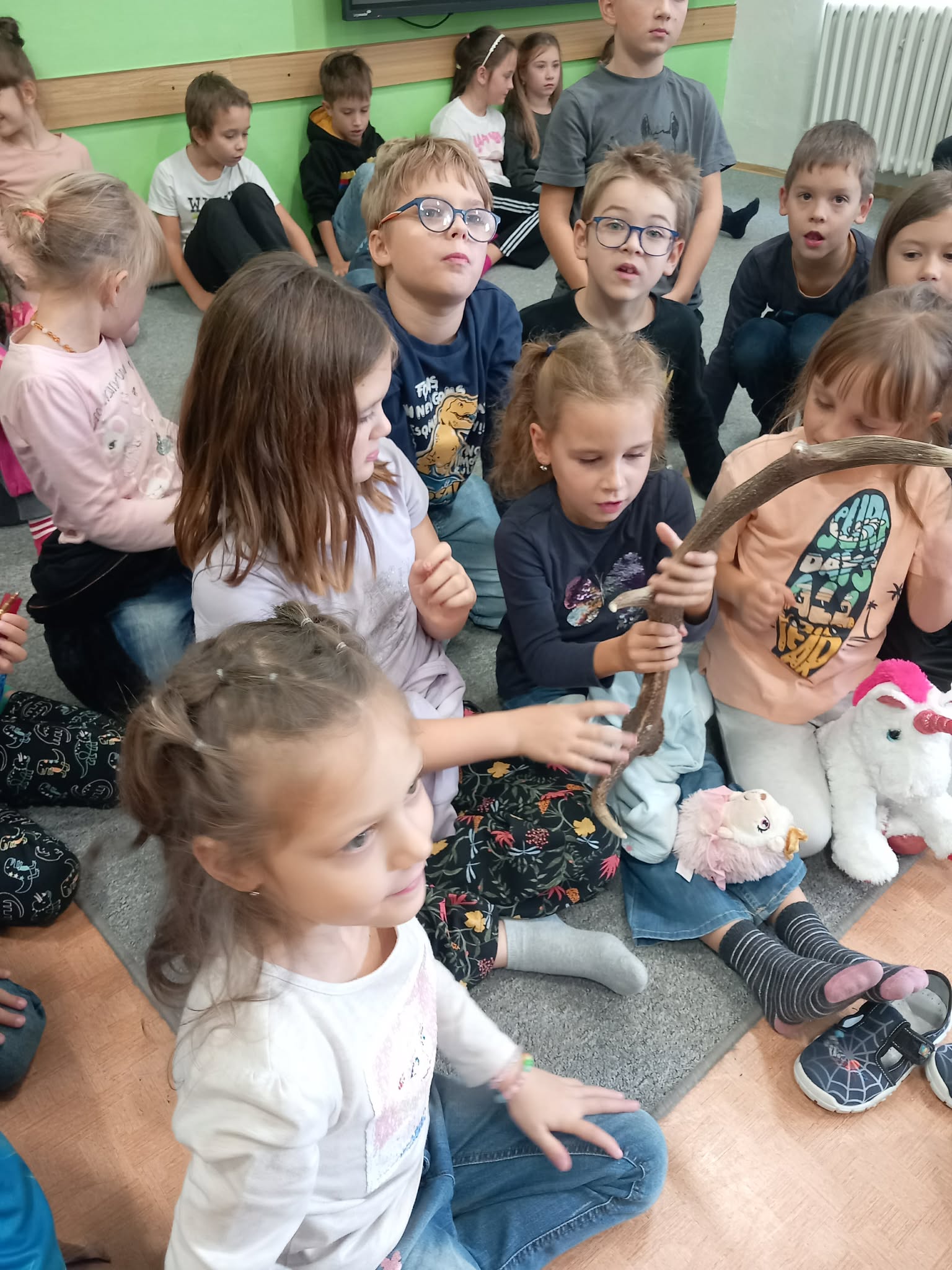 Dalším oblíbeným tématem října byla myslivost a hony. Děti se seznámily se zásadami slušného chování v lese a v přírodě. Řekli jsme si, jak je důležité být v přírodě ohleduplný, ale také jak můžeme zvěři a dalším živočichů usnadnit příchod podzimu. Děti si zopakovaly základní druhy zvěře žijící v lese a naučili jsme se poznávat jejich stopy a další znaky. Dvě oddělení navštívil pan myslivec David, který dětem krásně popovídal o myslivosti a donesl jim ukázat trofeje, zbraně a další modely.